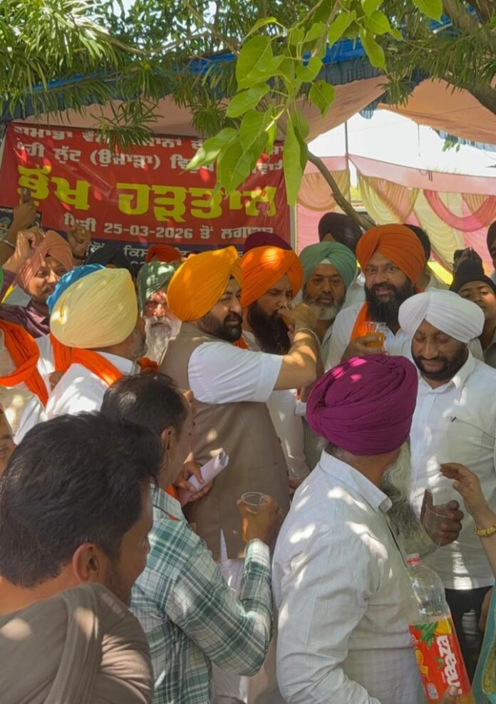 ਸੂਬੇ ਦੇ ਮਕਾਨ ਉਸਾਰੀ ਅਤੇ ਸ਼ਹਿਰੀ ਵਿਕਾਸ ਮੰਤਰੀ ਹਰਦੀਪ ਸਿੰਘ ਮੁੰਡੀਆਂ ਤੇ ਮੋਹਾਲੀ ਦੇ ਐਮ ਐਲ ਏ ਕੁਲਵੰਤ ਸਿੰਘਮੋਹਾਲੀ ਦੇ ਐਰੋਟ੍ਰੋਪੋਲਿਸ ਪ੍ਰੋਜੈਕਟ ਵਿੱਚ ਜ਼ਮੀਨ ਅਧਿਗ੍ਰਹਿਣ ਨਾਲ ਪ੍ਰਭਾਵਿਤ ਕਿਸਾਨਾਂ/ਜ਼ਮੀਨ ਮਾਲਕਾਂ ਵੱਲੋਂ ਆਪਣੀਆਂ ਸਮੱਸਿਆਵਾਂ ਨੂੰ ਲੈ ਕੇ ਪਿਛਲੇ ਕਈ ਦਿਨਾਂ ਤੋਂ ਗਮਾਡਾ ਦਫ਼ਤਰ ਮੋਹਾਲੀ ਦੇ ਬਾਹਰ ਜਾਰੀ ਭੁੱਖ ਹੜਤਾਲ ਅੱਜ ਕਿਸਾਨ ਆਗੂਆਂ ਨੂੰ ਜੂਸ ਪਿਲਾ ਕੇ ਅਤੇ ਉਨ੍ਹਾਂ ਵੱਲੋਂ ਰੱਖੀਆਂ ਮੰਗਾਂ ਨੂੰ ਭਗਵੰਤ ਸਿੰਘ ਮਾਨ ਸਰਕਾਰ ਵੱਲੋਂ ਮੰਨਣ ਦਾ ਐਲਾਨ ਕਰਕੇ ਖਤਮ ਕਰਵਾਈ। ਇਸ ਮੌਕੇ ਗਮਾਡਾ ਦੇ ਮੁੱਖ ਪ੍ਰਸ਼ਾਸਕ ਸ਼੍ਰੀਮਤੀ ਸਾਕਸ਼ੀ ਸਾਹਨੀ ਅਤੇ ਲੈਂਡ ਐਕੂਜ਼ੀਸ਼ਨ ਅਫ਼ਸਰ ਰੋਹਿਤ ਜਿੰਦਲ ਵੀ ਮੌਜੂਦ ਸਨ।